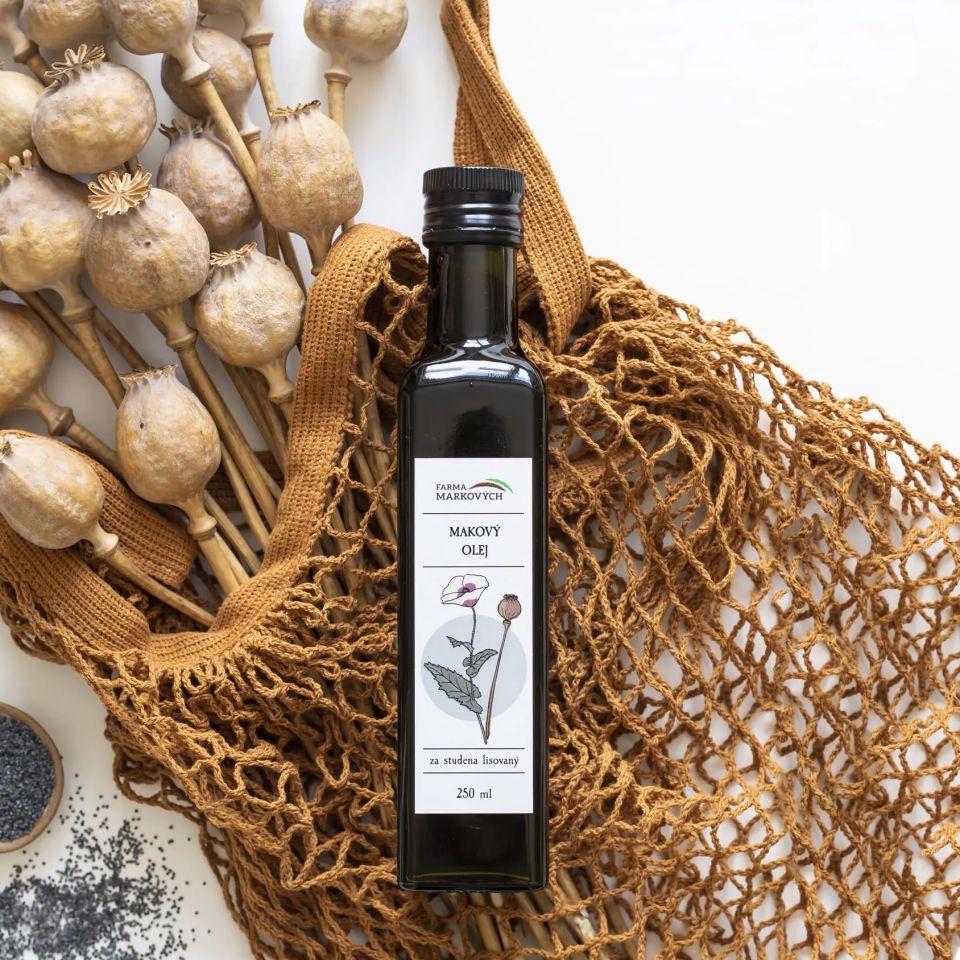 100% přírodní olej získaný ze semen modrého máku je pečlivě vypěstován přímo na naší farmě.
